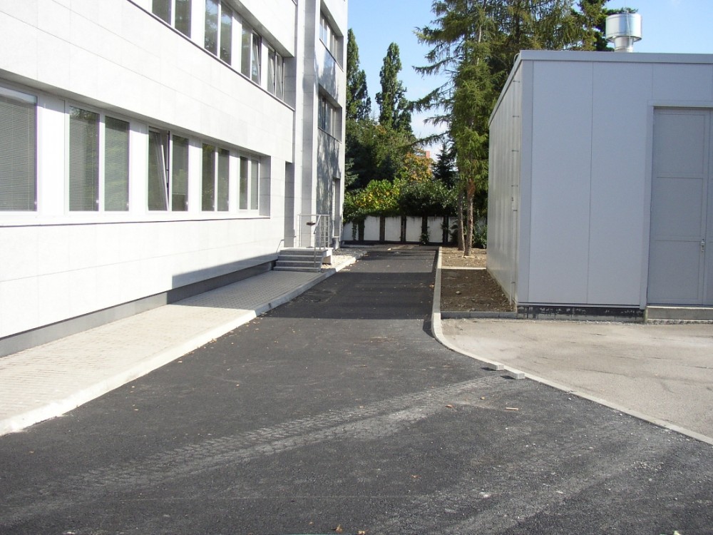 Úlohou projektu bolo riešiť obnovu vnútroareálových komunikácií v šírkovom usporiadaní pre prejazd nákladnej dopravy zásobovania a požiarnej techniky a znížiť intenzitu dopravy v historickom jadre areálu. Z dôvodu zjednotenia komunikácií bolo riešené aj obnovenie (dopl- nenie) odvodnenia ciest, funkčné prepojenie s pešími komuni- káciami a konečné zjednotenie areálu sadovými úpravami. Pôvodný stav areálového osvet- lenia bol nevyhovujúci, preto bolo navrhnuté aj nové areálové osvetlenie.