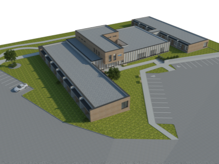 The proposed building is a non-basement, single-story structure; the second floor is designed only in the central part above the main entrance. In terms of layout, the building is divided into a central section, a residential section on the southern side – Pavilion A, and a residential section on the northern side – Pavilion B. The central section contains the main entrance, operational facilities (storage rooms, sanitary facilities), a food serving area with dining room, a common room, a visitors’ room, therapy and rehabilitation rooms, and a chapel. Pavilion A includes 14 double rooms; Pavilion B includes 2 double rooms, 8 single rooms, a treatment room, and a room for a social worker for the provision of social counseling and social work with clients and their families. Each room has its own sanitary facilities (toilet, washbasin, shower). The second floor accommodates staff facilities – changing rooms, sanitary facilities, offices, and meeting rooms.