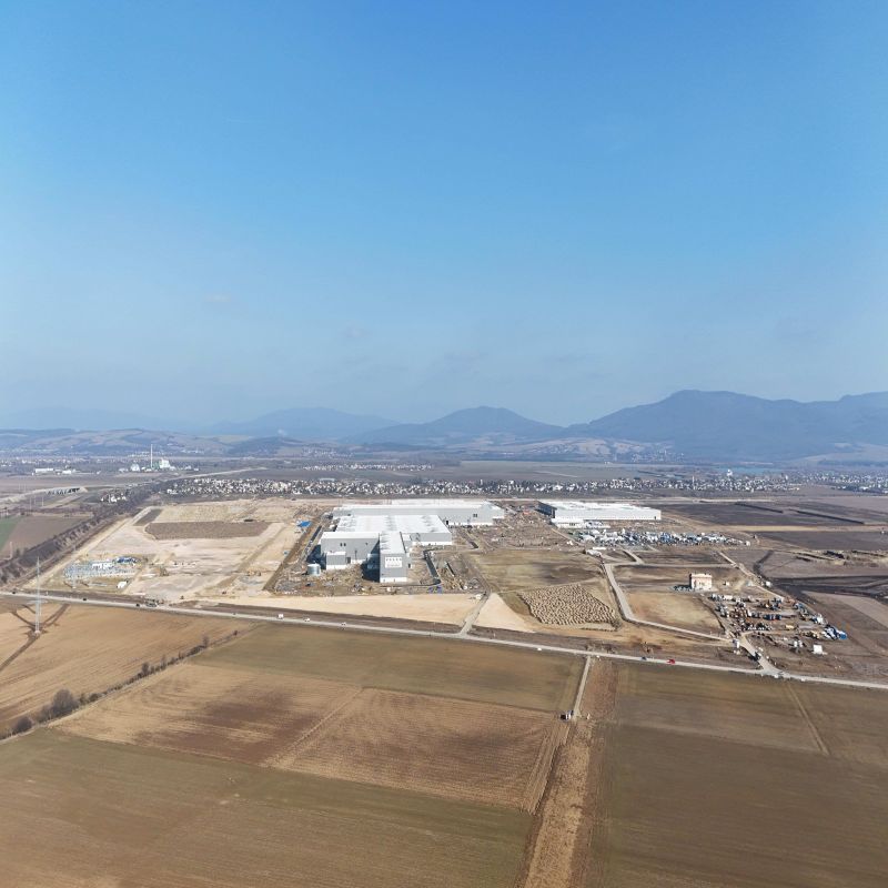 Design and coordination of the comprehensive transport and technical infrastructure for the new automotive plant site. The project included internal roads, paved areas, parking, utility networks, water management, and connections to the main infrastructure systems.